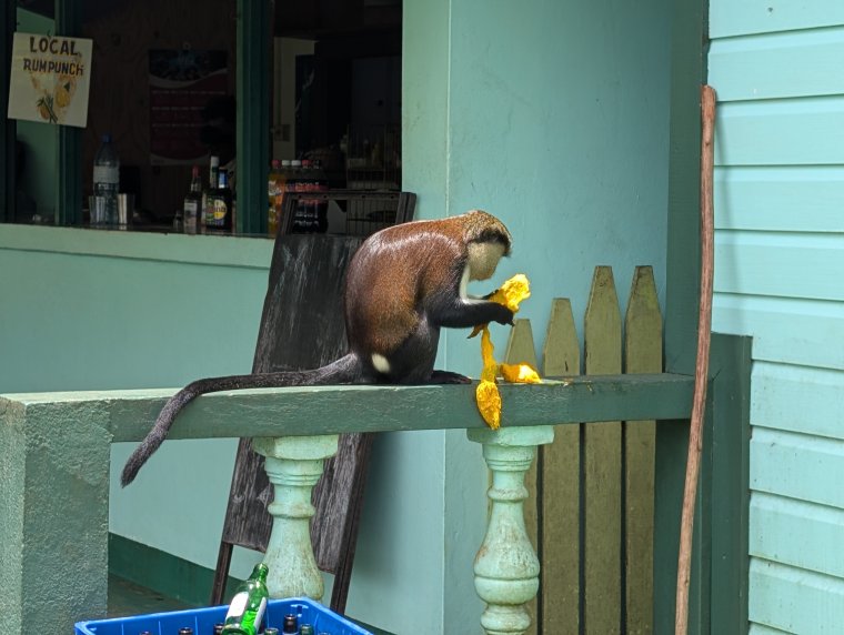I learned how to play Mexican Dominos, which is a popular Cruiser activity on Sunday afternoons. We also went on a Rum Distillary Tour. On the way, to the Rum Distillary, I FINALLY got to see Monkey's. I had gone to the correct spot, but kept looking on the wrong side of the rode. Finally with friends from the Port Louis Marina, they showed me where to see the Monkeys.