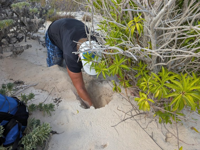 The Bonaire Turtle Conservancy allows the public to come along for their turtle monitoring. This was a great experience, because I joined the conservancy volunteers and 6 grad students who were doing different research studies. It wasn't a tour, they were actually collecting important data. One PHD student was collecting DNA from the hatch eggs as well as eggs that didn't produce turtles. The team leader found a nest that some of the hatchlings had made it out, but he kept digging and there were several baby turtles that were trapped under a couple of large pieces of coral. They would have died in the nest if he hadn't dug them out. I had the special privilege of seeing 10 of these babies make it to sea.