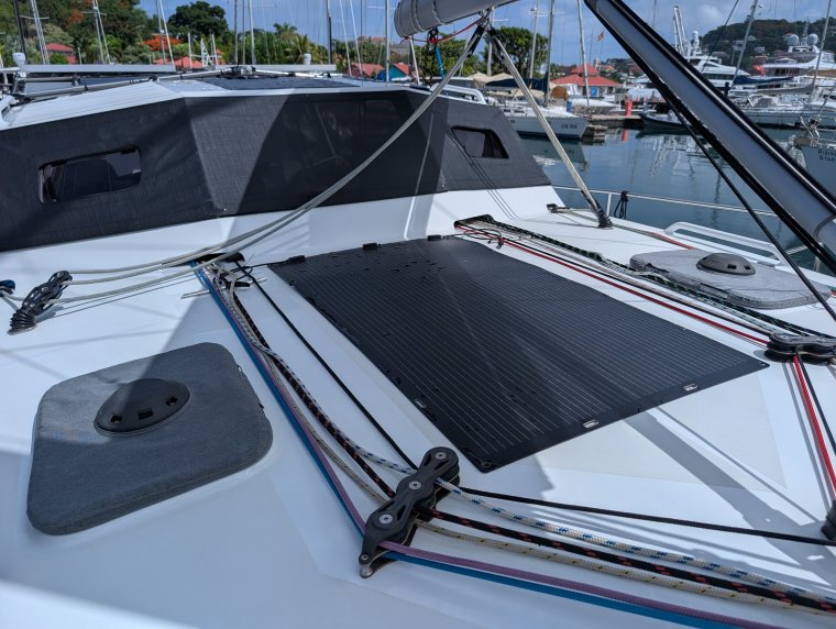 Since we went back to the US for a few weeks, naturally we brought back over 300 lbs of gear, and that included MORE solar panels. We now have another 300 watts permentanly installed on the deck and the top of the Dog House.